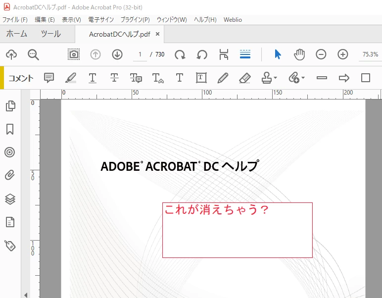 コメントを入れた後、画面上から消える | Acrobat