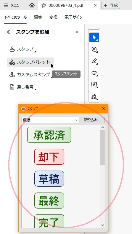 スタンプパレットが表示(起動)されなくなってしまいました。