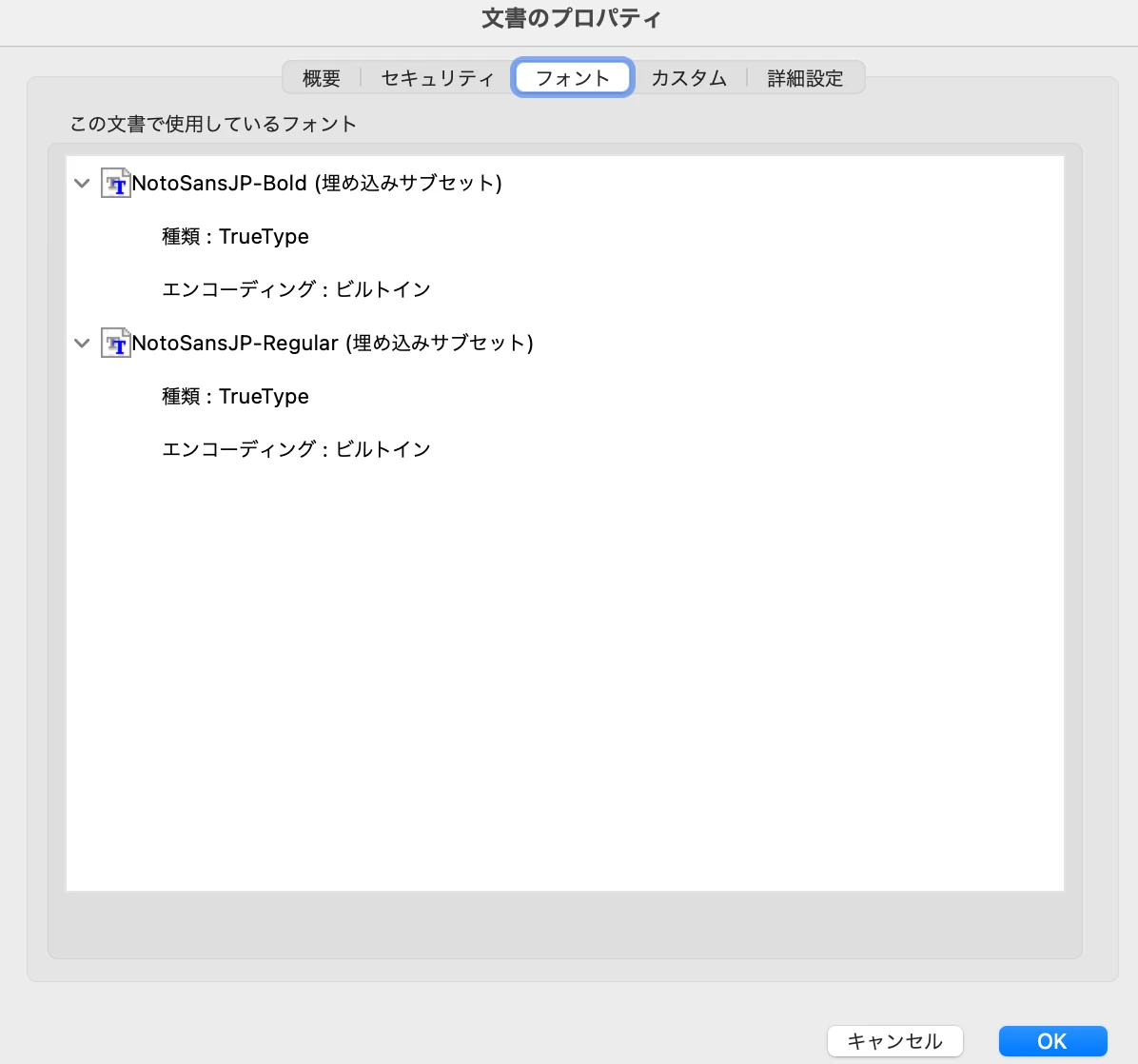 PDFにフォントの埋め込みもしております。