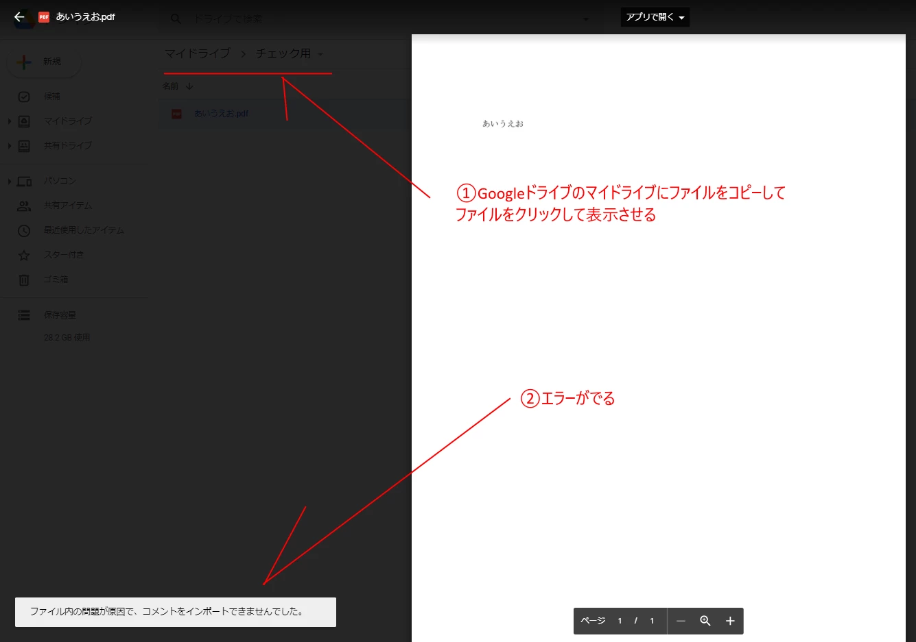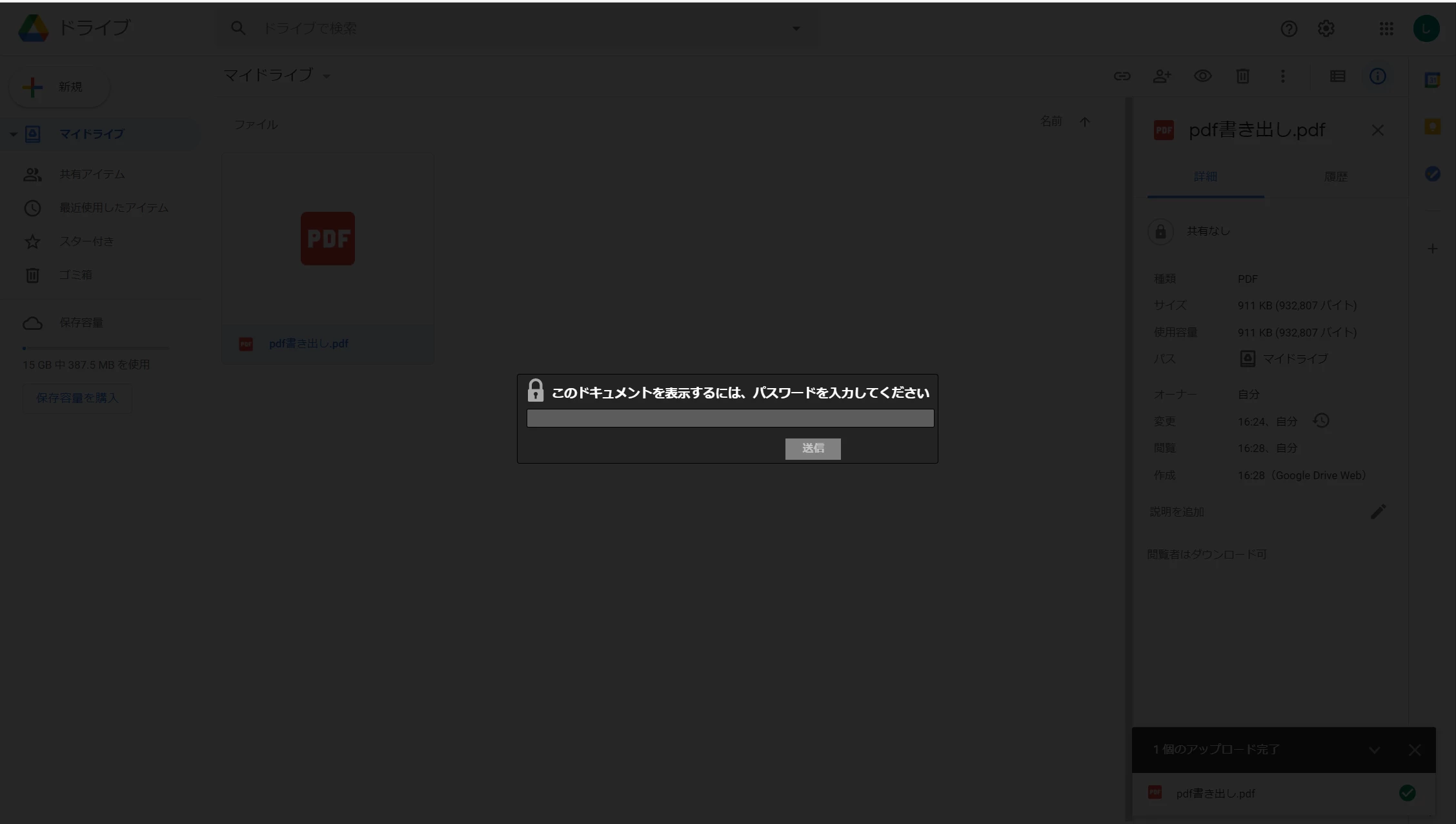 単純にパスワード保護したPDFをDriveにて開こうとすると