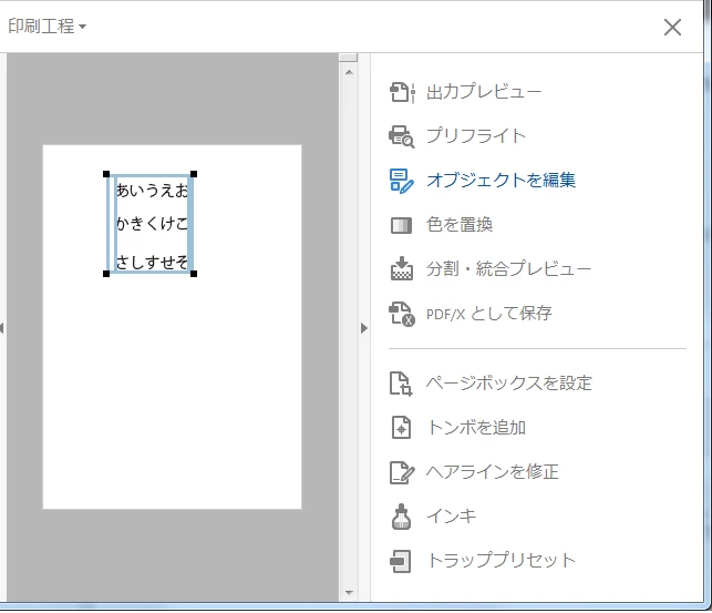 ・Acrobat DCで開き、編集機能を使ってテキストエリアの状態を確認