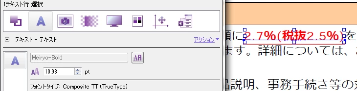 作成されたPDFを確認するとフォントの太さ、幅が微妙に違います。