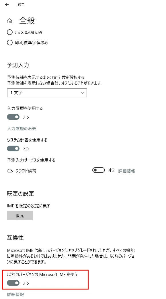 ただ、どうも2004以降の新MS-IMEが問題になっているようで、MS-IMEの設定を開いて従来のIMEに戻すと正常動作するようになりました。