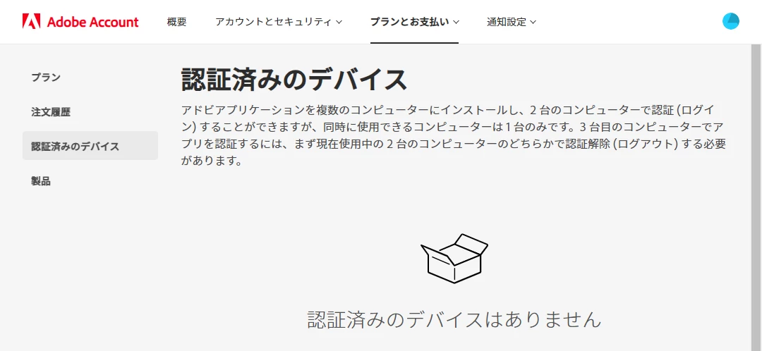 アカウント画面から認証解除出来るのはサブスクリプション契約のアプリケーションのみだったと記憶しています。(永続ライセンスは元のPCからの認証解除のみ)