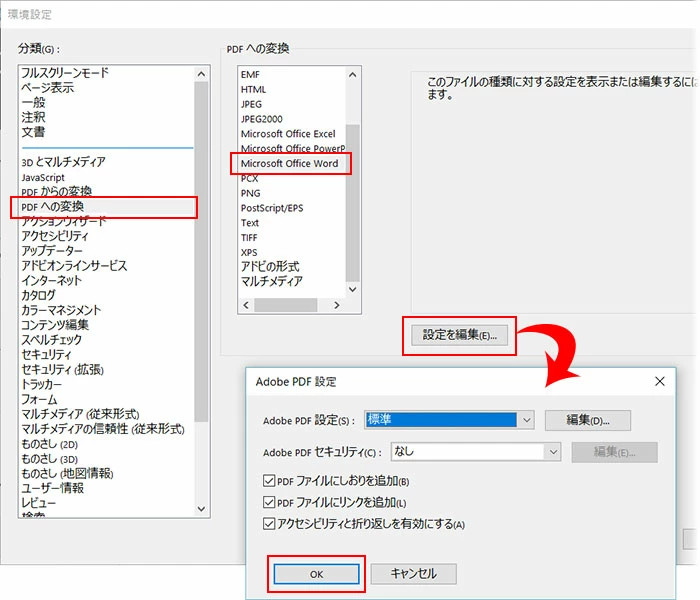 Acrobat DC(2015)を使ってWord(2016)の文書をPDF化しようとすると、「Adobe PDF]リソースファイルが見つかりません。