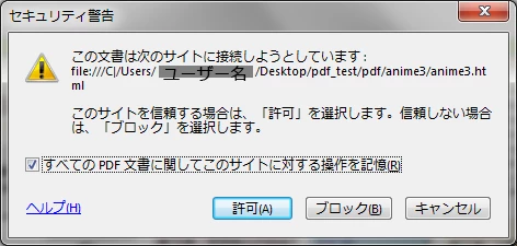 Acrobatを使わずにそのままhtmlを開いた際は警告などは表示されませんでした。
