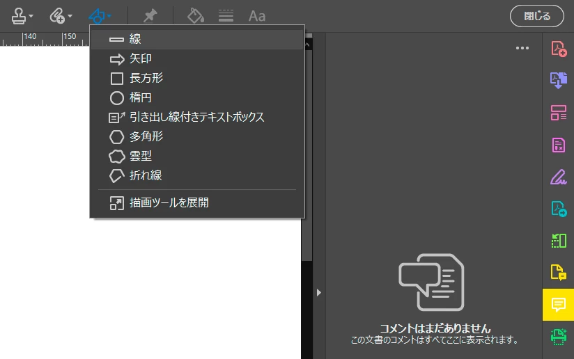 ツールのコメントの中の図形の項目に「線」がありました。