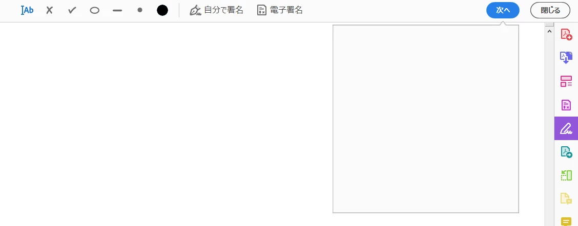 「入力と署名」で「電子署名」をクリックしても、真っ白なポップアップが出るだけで何も表示されません。