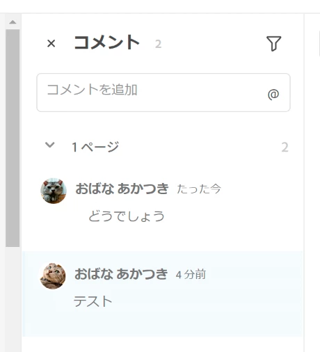 自分が招待した(親)共有者のコメント項目が、自分のコメントとしても表示され、共有者と自分、ダブルで同じコメントが表示される状態です。ちなみにプランは無料。