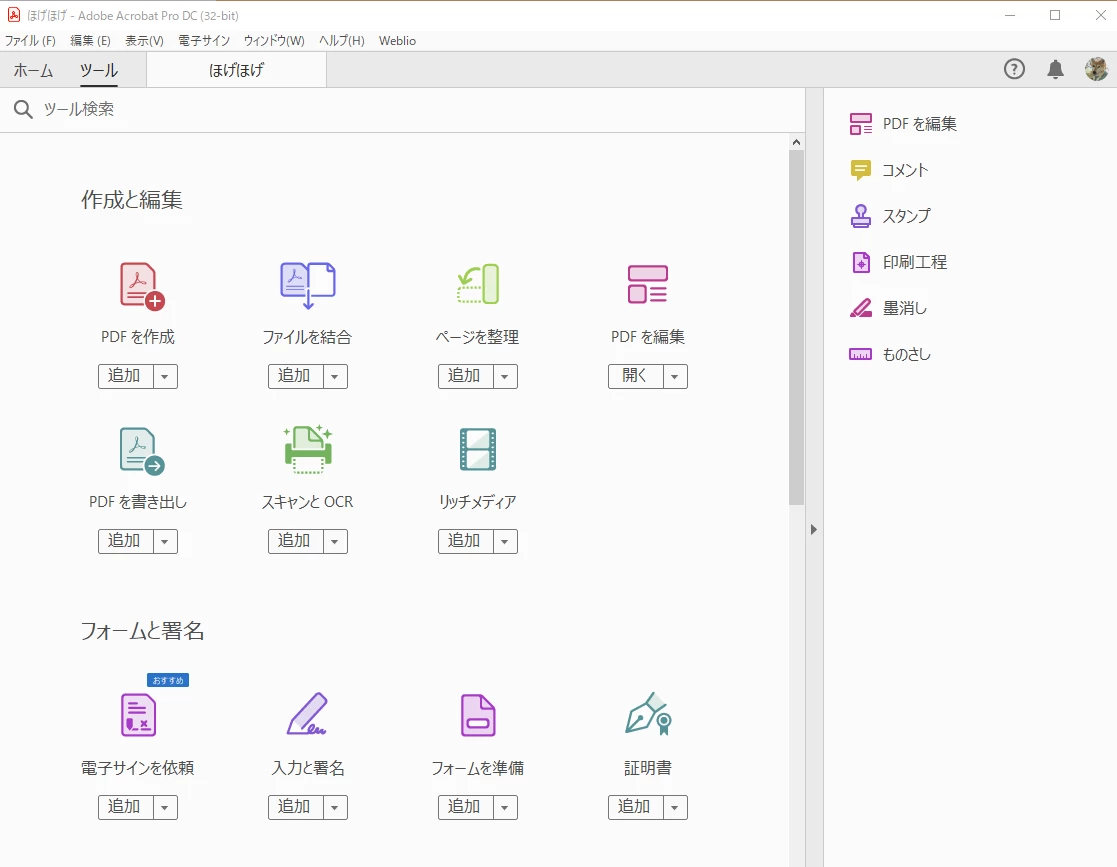 再ログインしたらメニューが少なくなった(PDFの作成・書き出し・入力と署名・電子サインを依頼・コメント・その他のツールのみ)