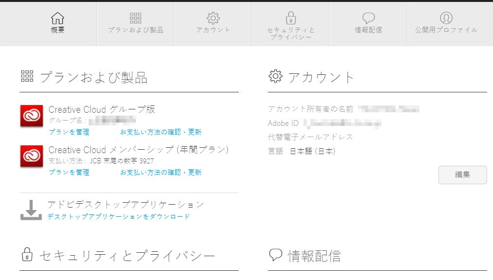サブスクリプション版の場合は、アカウント管理画面の「プランおよび製品」に