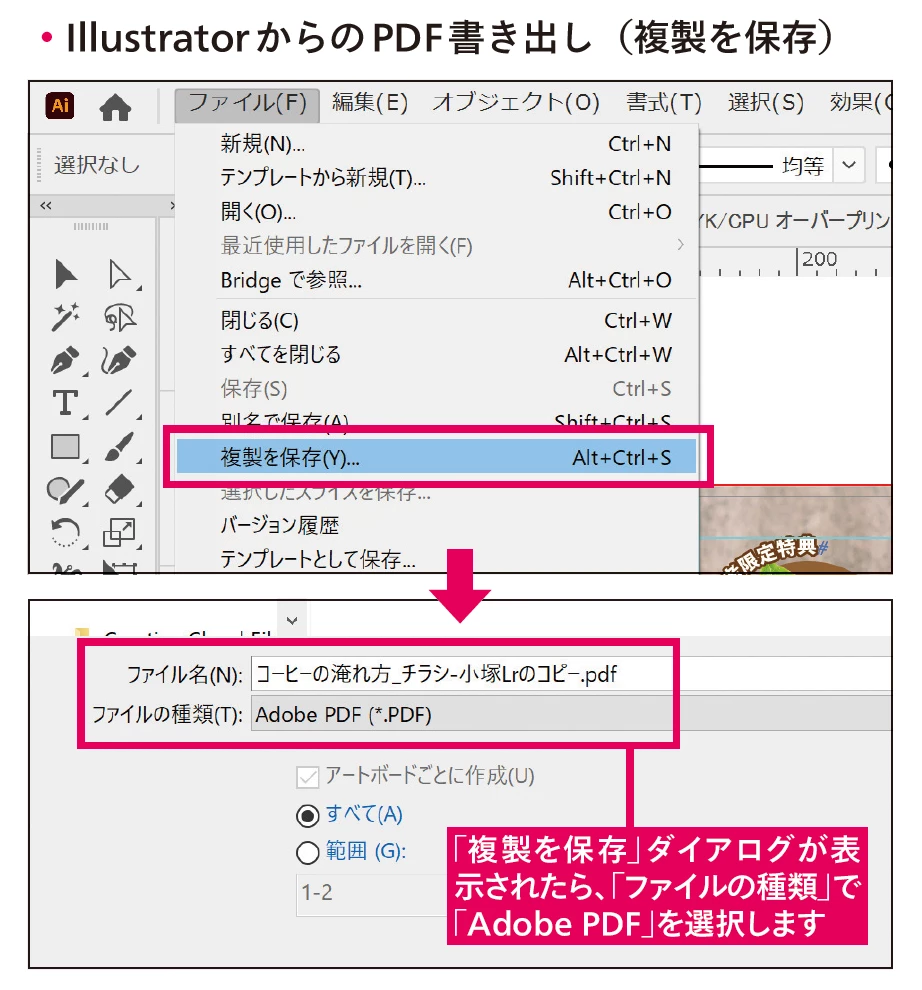 Illustratorから、ベクトル、テキスト、画像データなどを