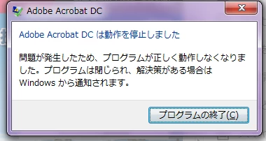 文書を分析中 の時に「動作を停止しました」と表示される。