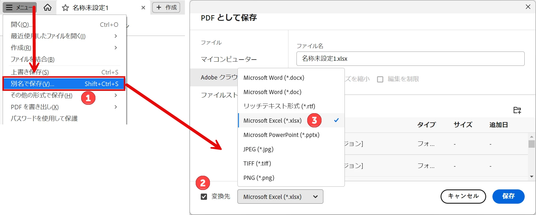 以前は名前を付けて保存からファイルの種類を選びExcelなどで保存できていたという問い合わせを、あるユーザーから受けたのですが、そのようにできる方法はあるのでしょうか。