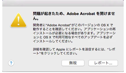 AcrobatをMacBookで開こうとすると、上記のメッセージが表示され、開くことができなくなりました。