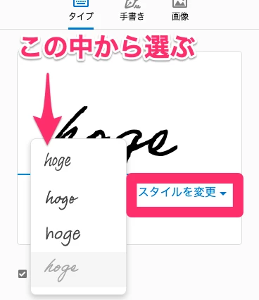 手書きサインが文字化けする。