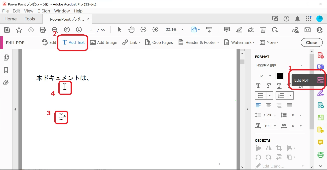 1. Edit PDFを クリックして編集できる状態にする