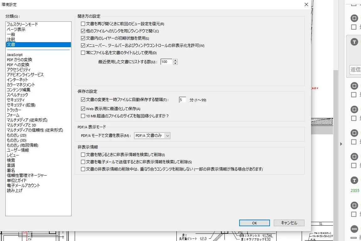 PDFファイルを開くと常に右側に「注釈パネル」が表示されます。