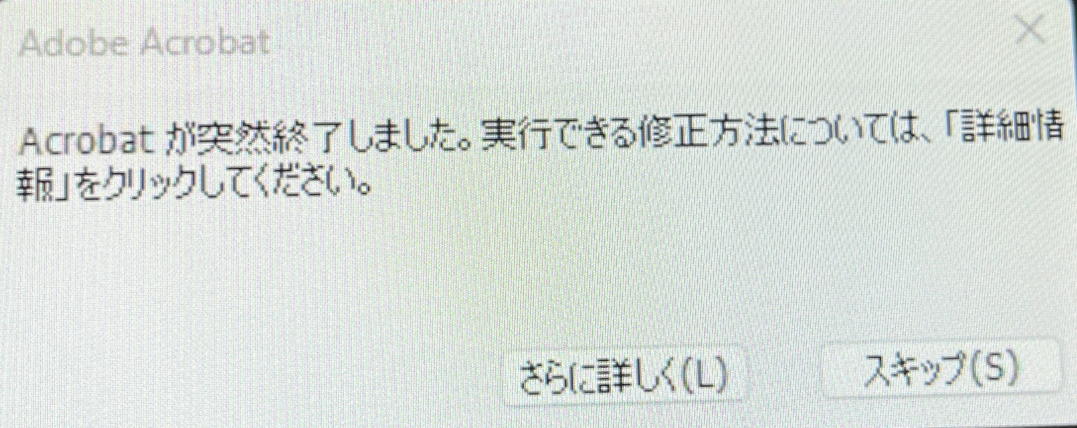 数日前から特定のファイル(今まで開けたファイル)が特定の端末(4台中1台)で開かず、Acrobat reader DC 立ち上がり後、真っ白で落ちるようになったのですが、解決策がわかられる方、おられますか?