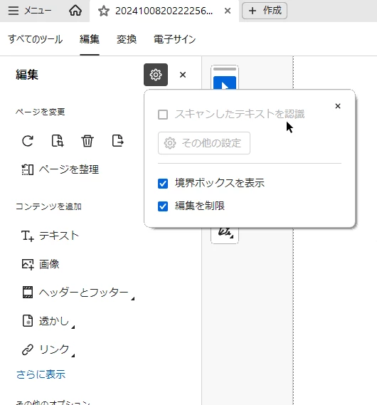 「画像にタイトルを付ける程度のテキスト編集を行いたいだけ」なのだとしたら,「テキストを認識」させないで「テキスト」を追加すればよいように思います(画像は新UI)。