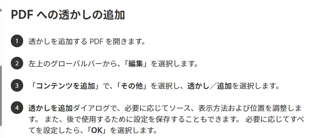 下記webサイト記載(adobe 社から引用)の透かし機能を使用したいのですが、