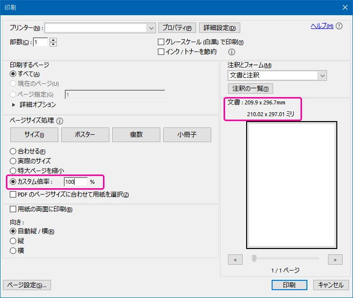 とまぁ、やり方については一応紹介しましたが、どうしても必要な事情がない限り、こうした方法でのサイズ変更はお薦めできません。基本的にやってはいけません、と言っておきましょう。そもそも、拡大・縮小しなくてよい、PDFの作成方法を考えてください。