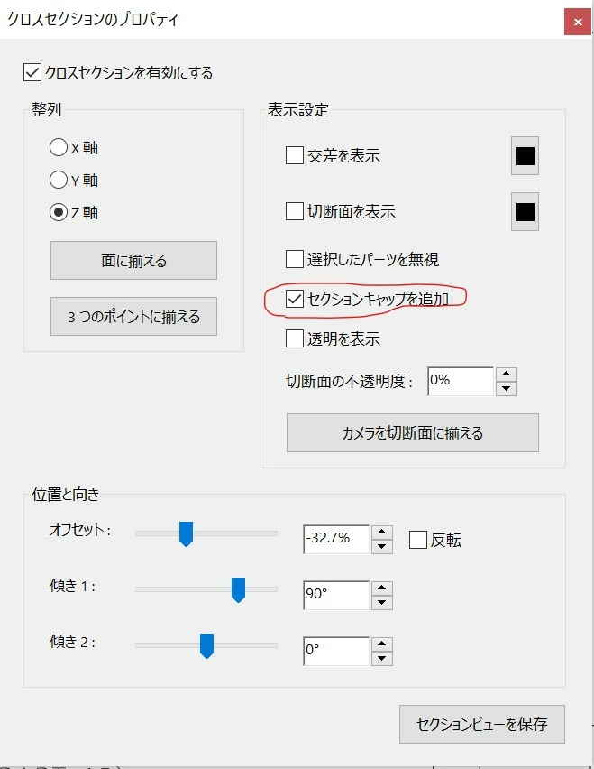 3Dモデルのセクションキャップを常にONにする方法