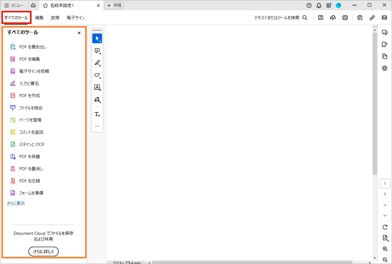 以前は右側にツール欄が表示されていましたが、新しいUIでは左側に「すべてのツール」が並ぶよう変更されました。