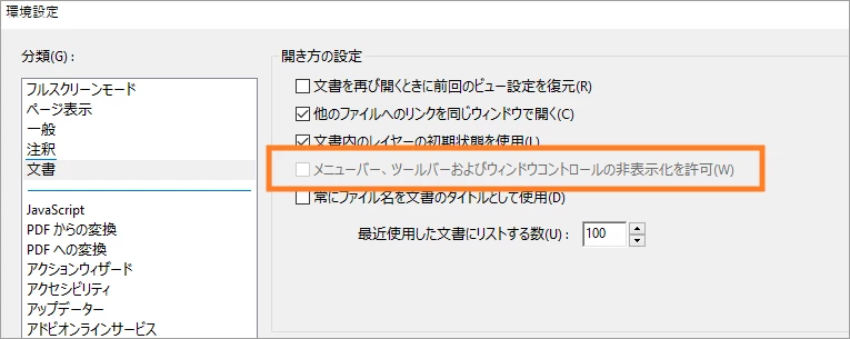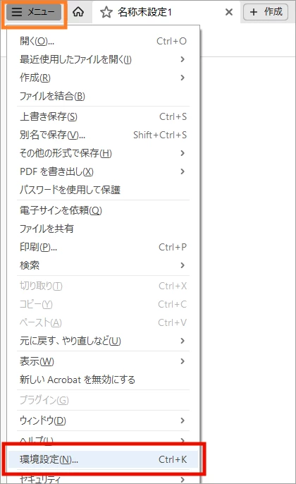 Acrobat を終了する前に以下の設定を変更してください。