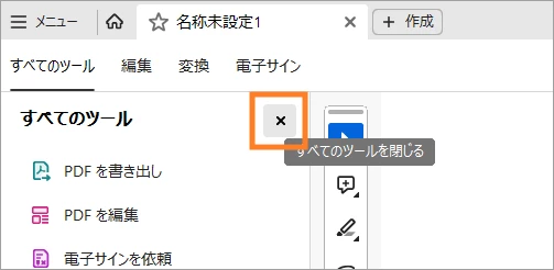 3. 「すべてのツール」が開いている場合、「×」で閉じてから Acrobat を終了する。