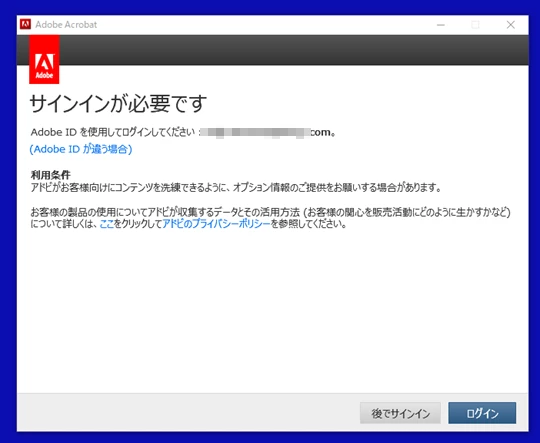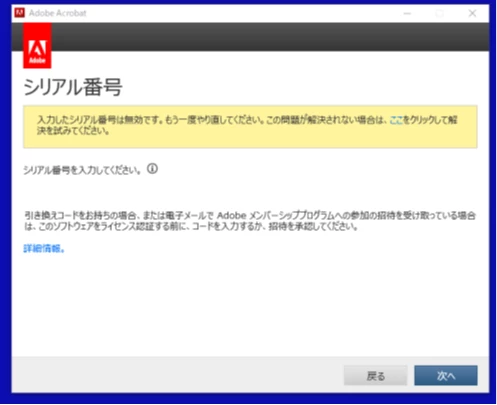 Acrobat 2017 でサインインが必要 のメッセージが出ます シリアルナンバーを確認して入れても「無効」です