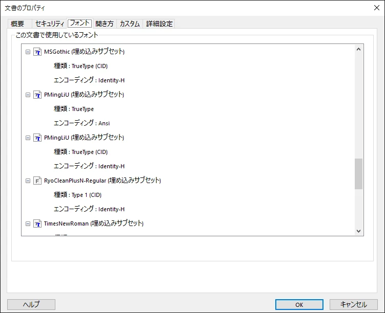 一旦、文書のプロパティで、フォントの状態を確認していただけますか。