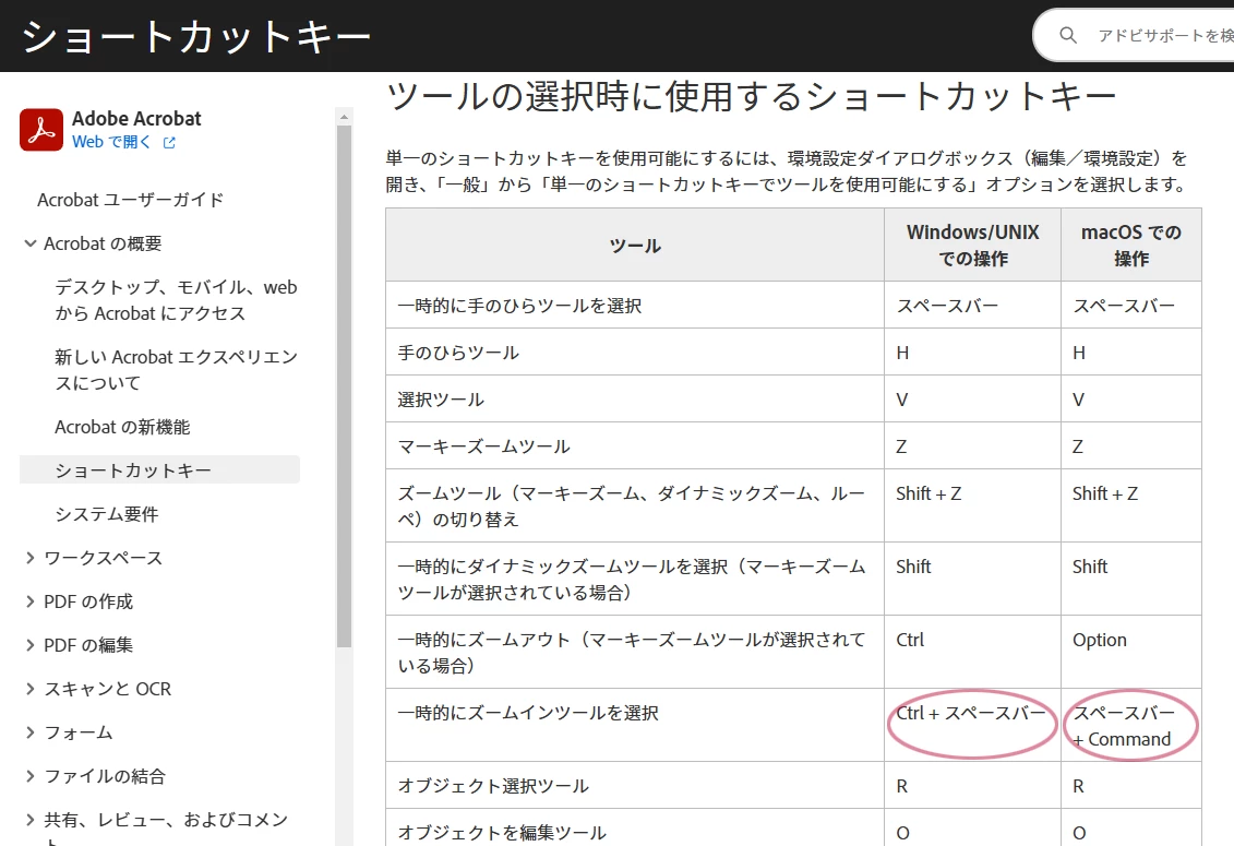 それとMacの場合はスペースキーを先に押してCommandキーの順番で押さないとズームツールになりません。これも使いづらいです。