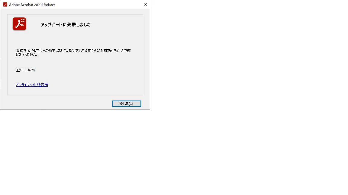 Acrobat Pro 2020でアップデートに失敗する