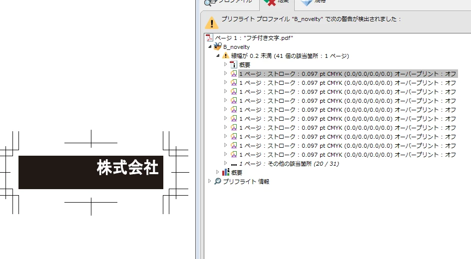 Acrobat Pro DC プリフライトチェック 実効線幅について
