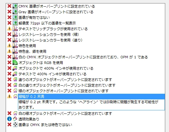 線幅(実効線幅)0.2pt以下の場合に警告が出るように設定しているのですが、