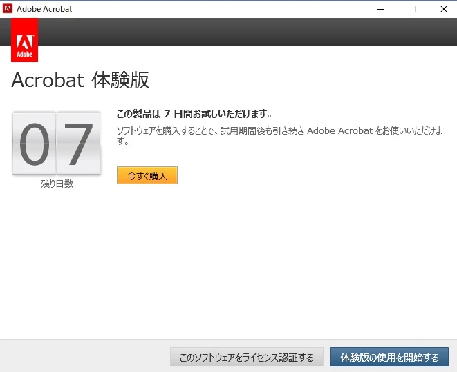 ここでは、「このソフトウェアをライセンス認証する」というボタンを押せば元通りにAcrobat Standard DCを使用できるのでしょうか。