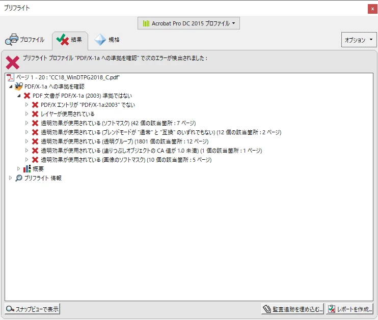 AcrobatDCでプリフライトレポートは作成出来ますか?