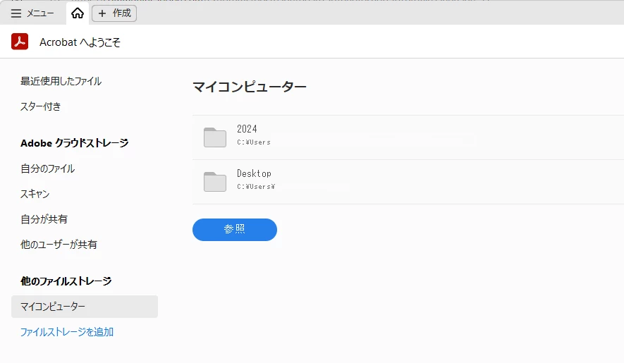 AcrobatDCで、他のファイルストレージ内のマイコンピューターに表示されるフォルダを消したい