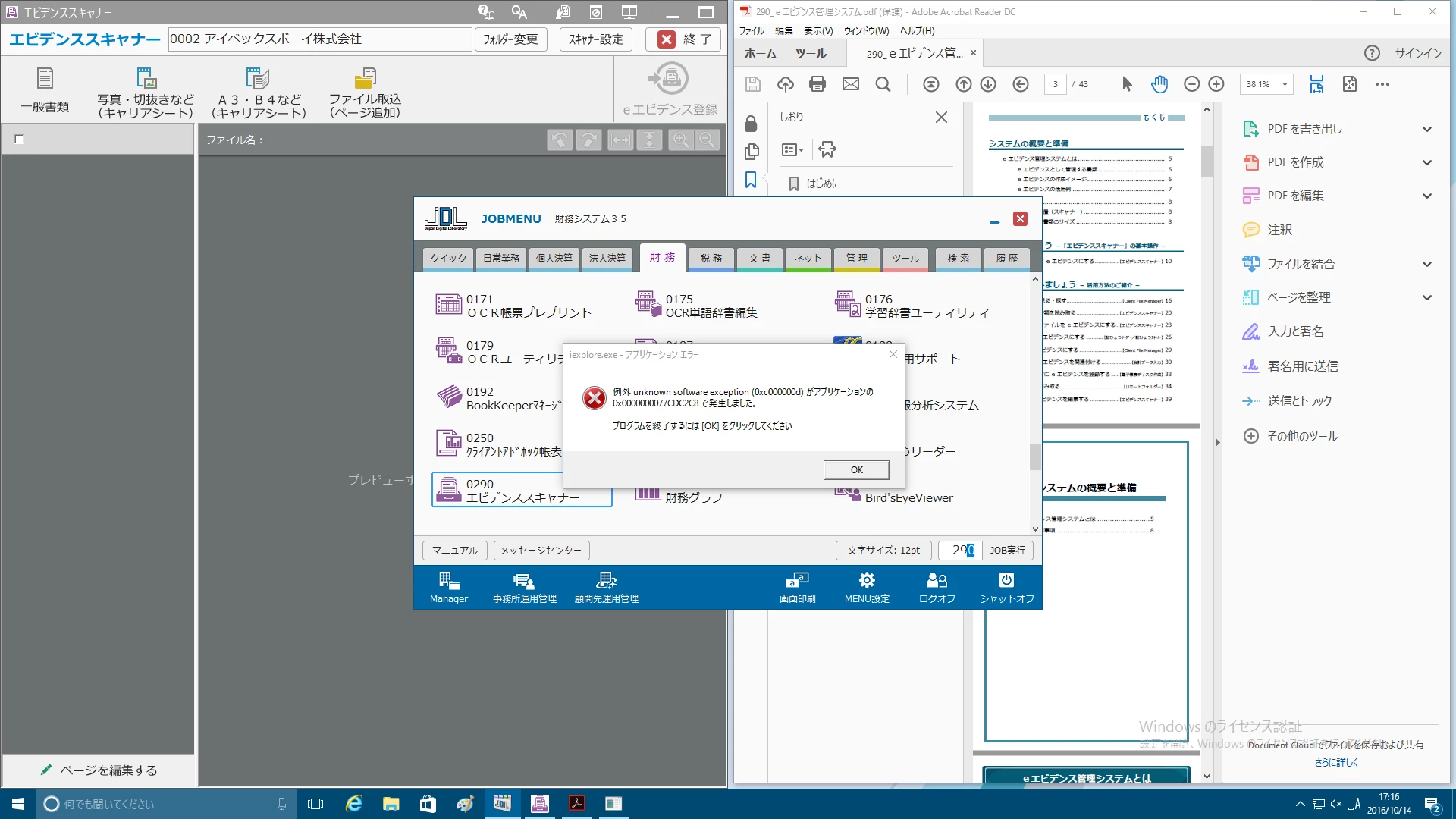 エラーダイアログが表示される件ですが、Adobe Reader DCでも同様の現象が発生することが確認