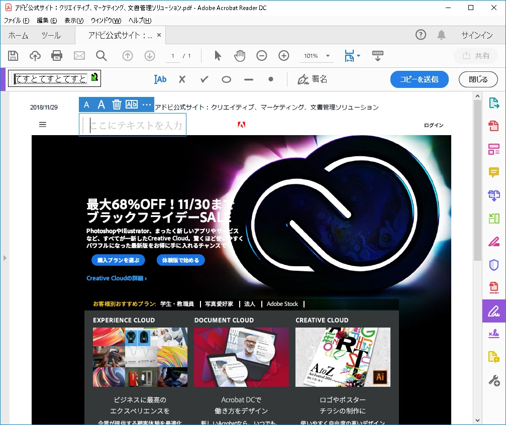 Acrobat Reader DC のVer 2019.008.20081を利用中です。