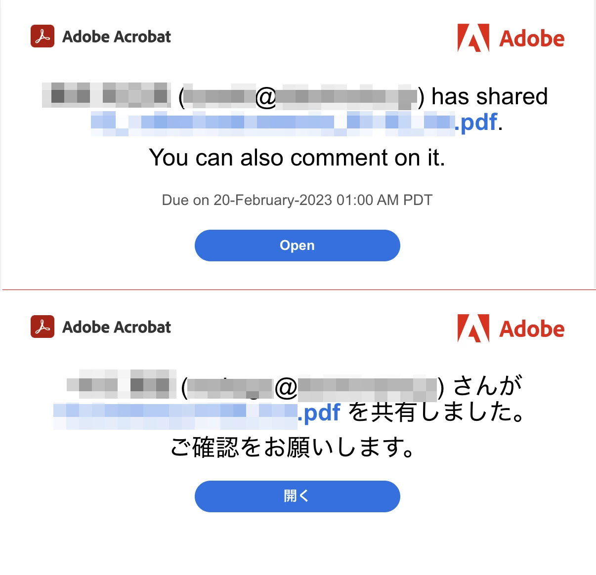 Adobe Acrobatでファイル共有時に自動で送られるメッセージについて