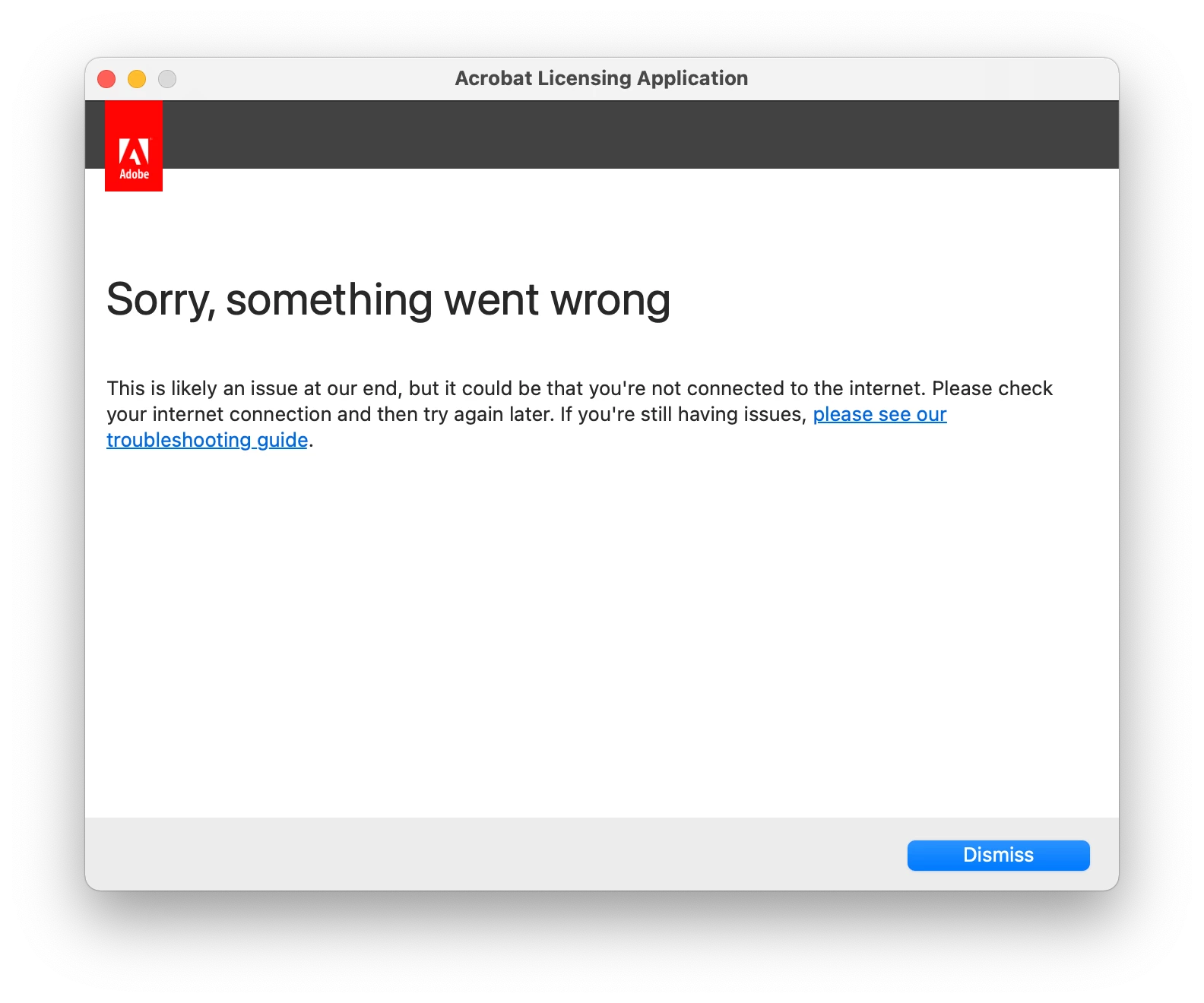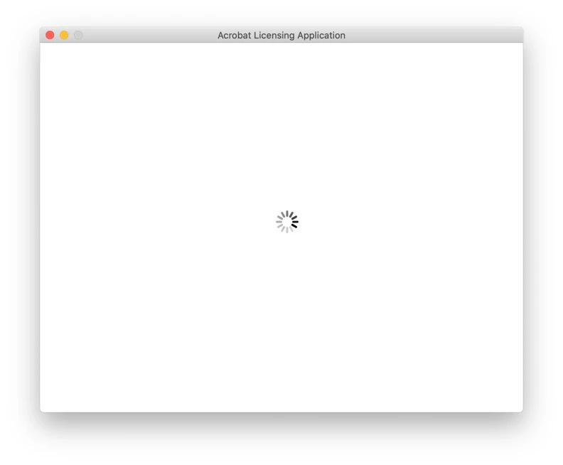 最近、Macを買い換えたため、新しいMacにAdobe Acrobat Classic 2015(Acrobat Pro DC 2015)をインストールしましたが、ユーザーのログイン画面で待機状態(Actobat Licensing Application Window中心に丸い表示が回ったまま)となり、進めません。