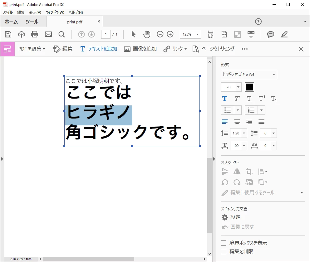 Adobe acrobat pro dcテキスト書き込みでフォントの種類とサイズの設定方法は。?