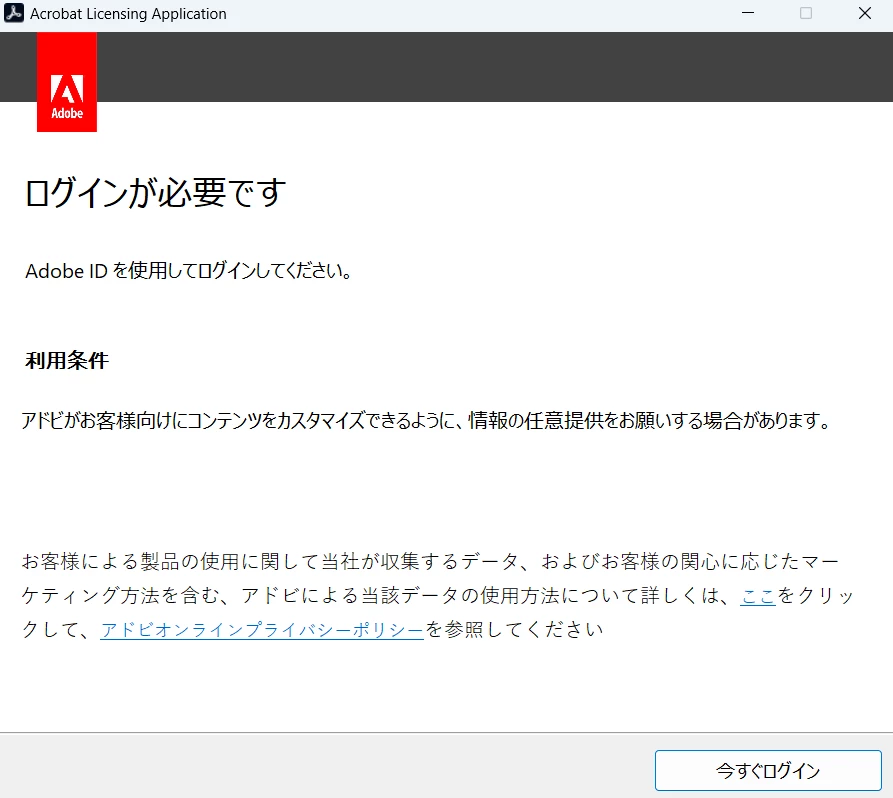 Adobe Acrobat2020でログイン画面が繰り返し表示される