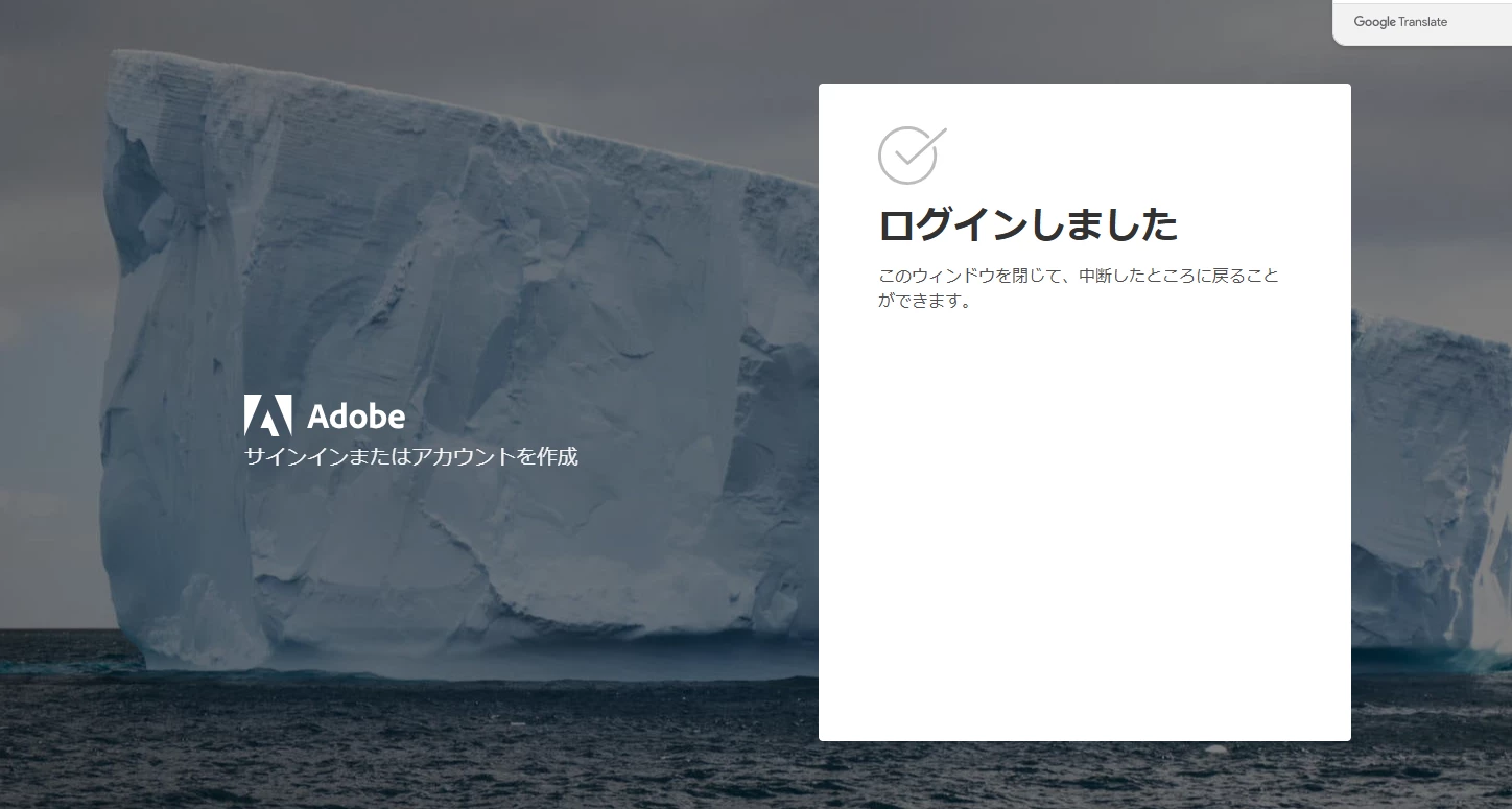 ログインが完了しましたと表示された後、タブを閉じてAcrobatに戻ったのですが