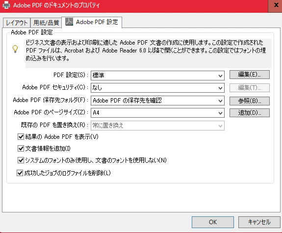 ・結果のAdobe PDF を表示:チェックを外していたが、チェックがついてしまう