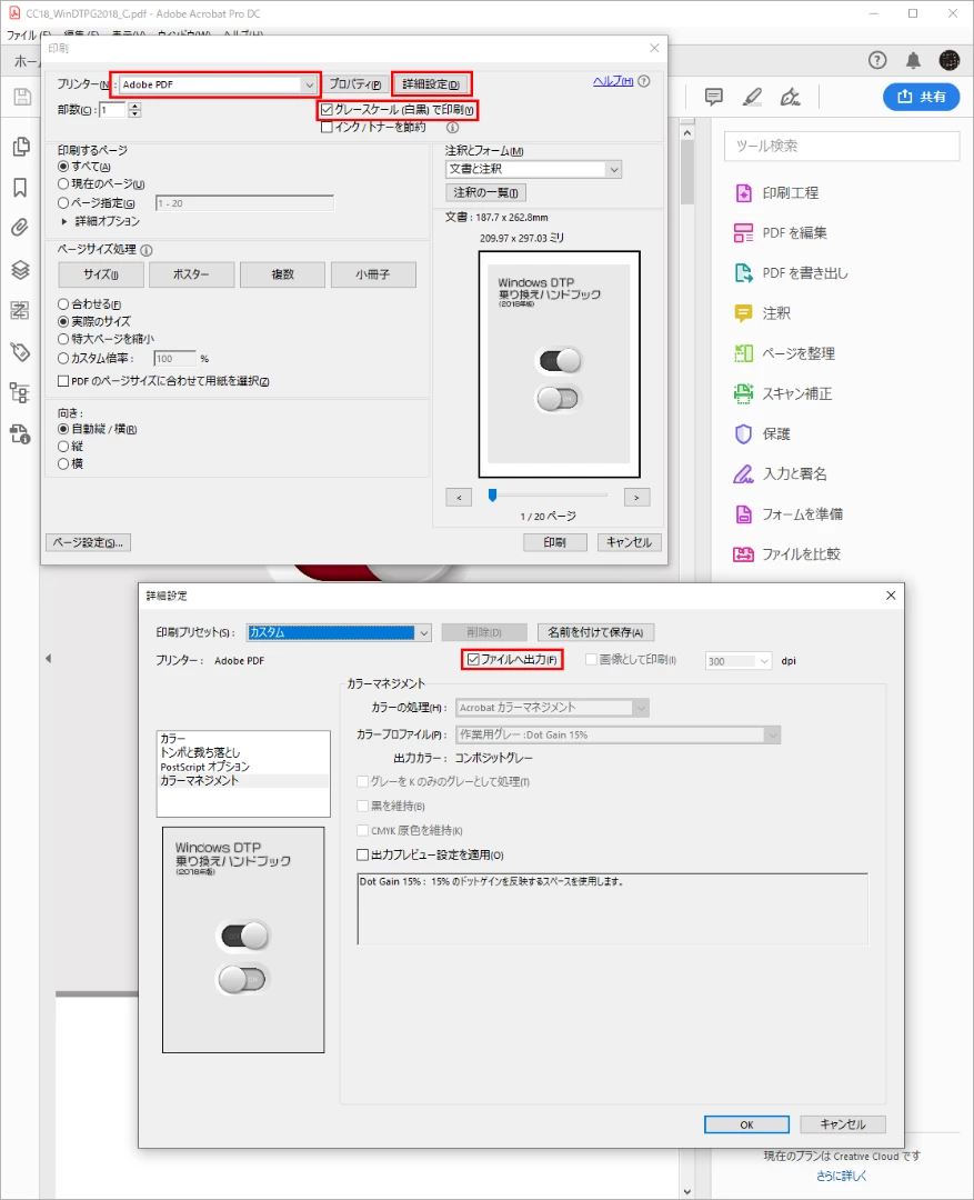 AdobeAcrobatStandard2017を使用しております。カラーのPDFデータをグレースケールへ変更する方法を教えてください。