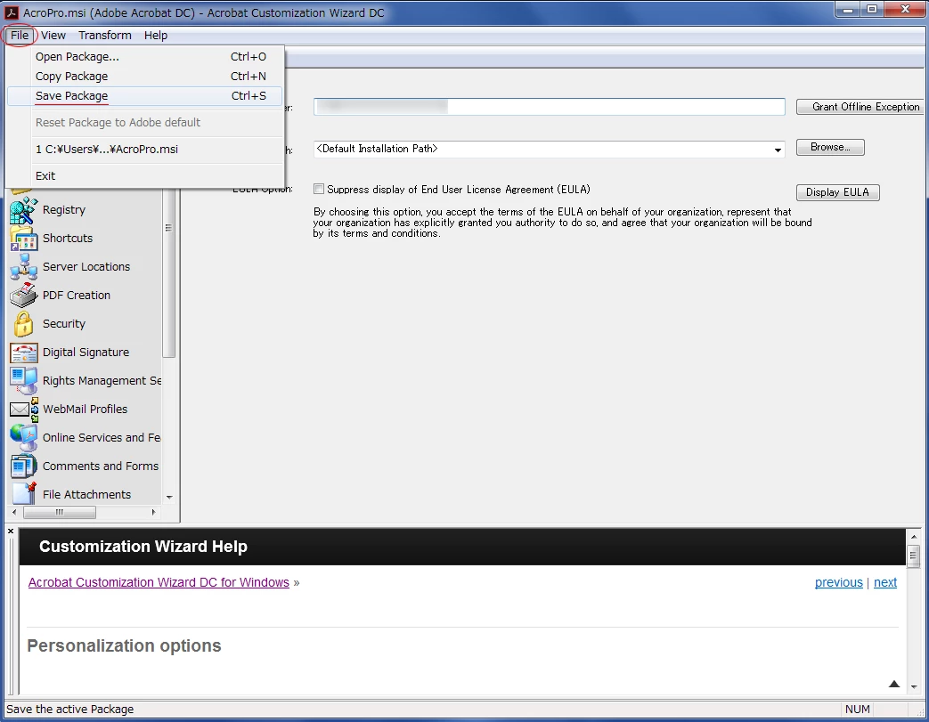 Customization Wizard でインストールパッケージをカスタマイズする方法(Windows)
