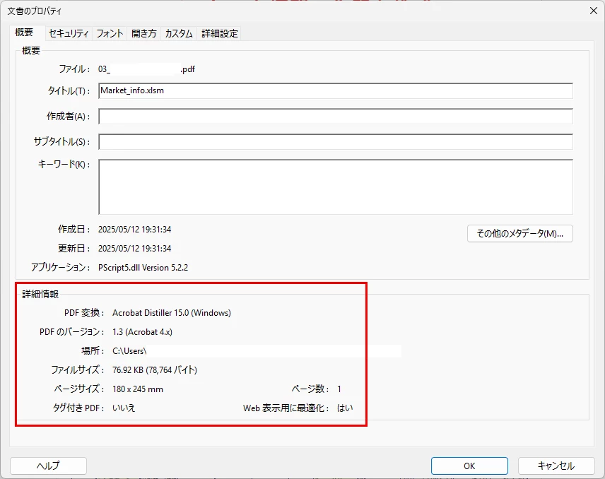 ExcelからPDFを作成した場合のバージョンとサイズについて